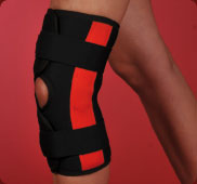 Ortéza z neoprenu, provedení vpředu podélně rozepínací na velcro pásku pro snadnější oblékání – vhodné pro starší pacienty. s otvorem pro čéšku, sahá 15 cm nad i pod koleno. Všité dvouosé plastové dlahy, dva elastické rozepínatelné tahy na velcro pásku. Základní provedení se zvýšeným stabilizačním a stahujícím a dobrým tepelně izolačním efektem.