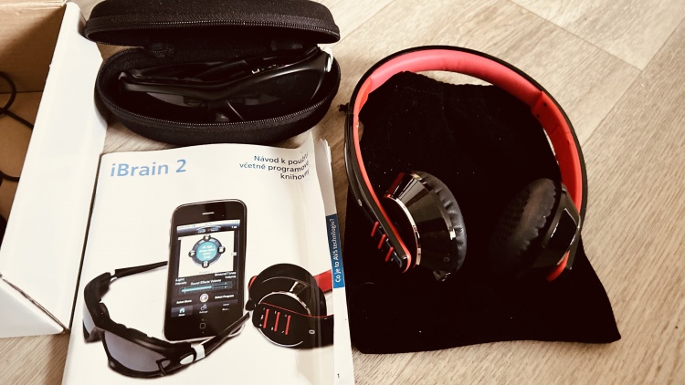 Skládá se tedy pouze ze stimulačních brýlí a sluchátek + aplikace, není zde “krabice” s ovladačem.
