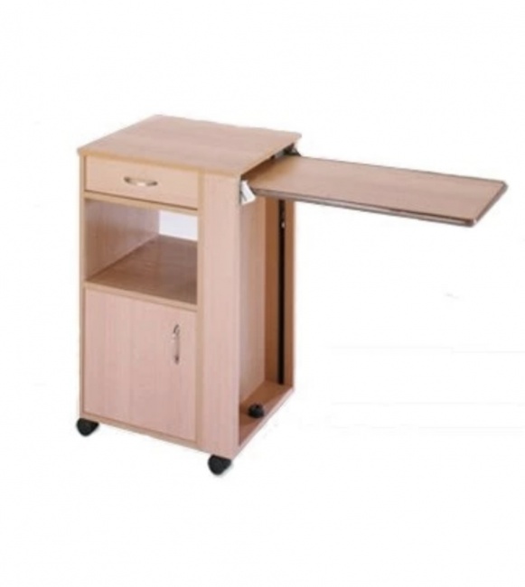 Spodní část tvoří ocelová kostra, ke které je připevněna jídelní deska. Stolek je opatřen ochranným nátěrem a otočnými kolečky, popř. brzdami.