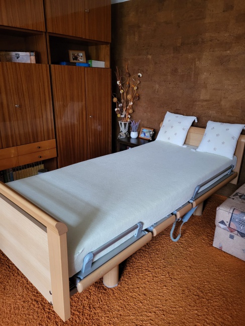 Prodám repasovanou polohovací postel Völker, repasovanou, skoro nepoužívanou, vybavenou příslušenstvím včetně nové matrace a hrazdy pro ruce. Prohlídka je možná podle dohody přímo na místě každý den kromě pátku.