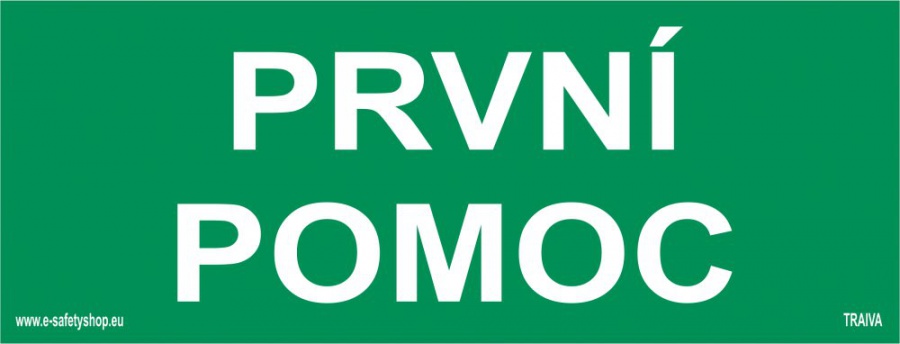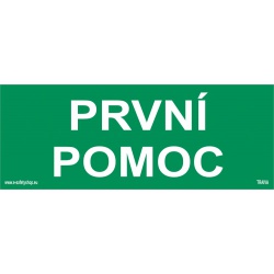 Bezpečnostní tabulka - samolepící fólie 210 x 80 mm k označení místa první pomoci. Tyto tabulky mají všeobecný informační charakter a dávají základní informaci o tom, kde lze poskytnout první pomoc v případě úrazu.