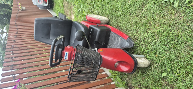 Plně funkční,spolehlivý,ale již nevyuživany.Elektromagnetická brzda,stavitelný úhel sloupku řízení, ukazatel stavu baterie,spátečka, neutrál, blinkry,osvětlení, klakson,zamykání skútru, palubní počítač, otočné a posuvné sedadlo,obklopné opěrky rukou,automatická nabíječka, košík. Rychlost 15km/h,Dojezd dle terénu až 60 km,Nové trakční baterie,nosnost 160kg. Délka 140cm,šířka 66cm.